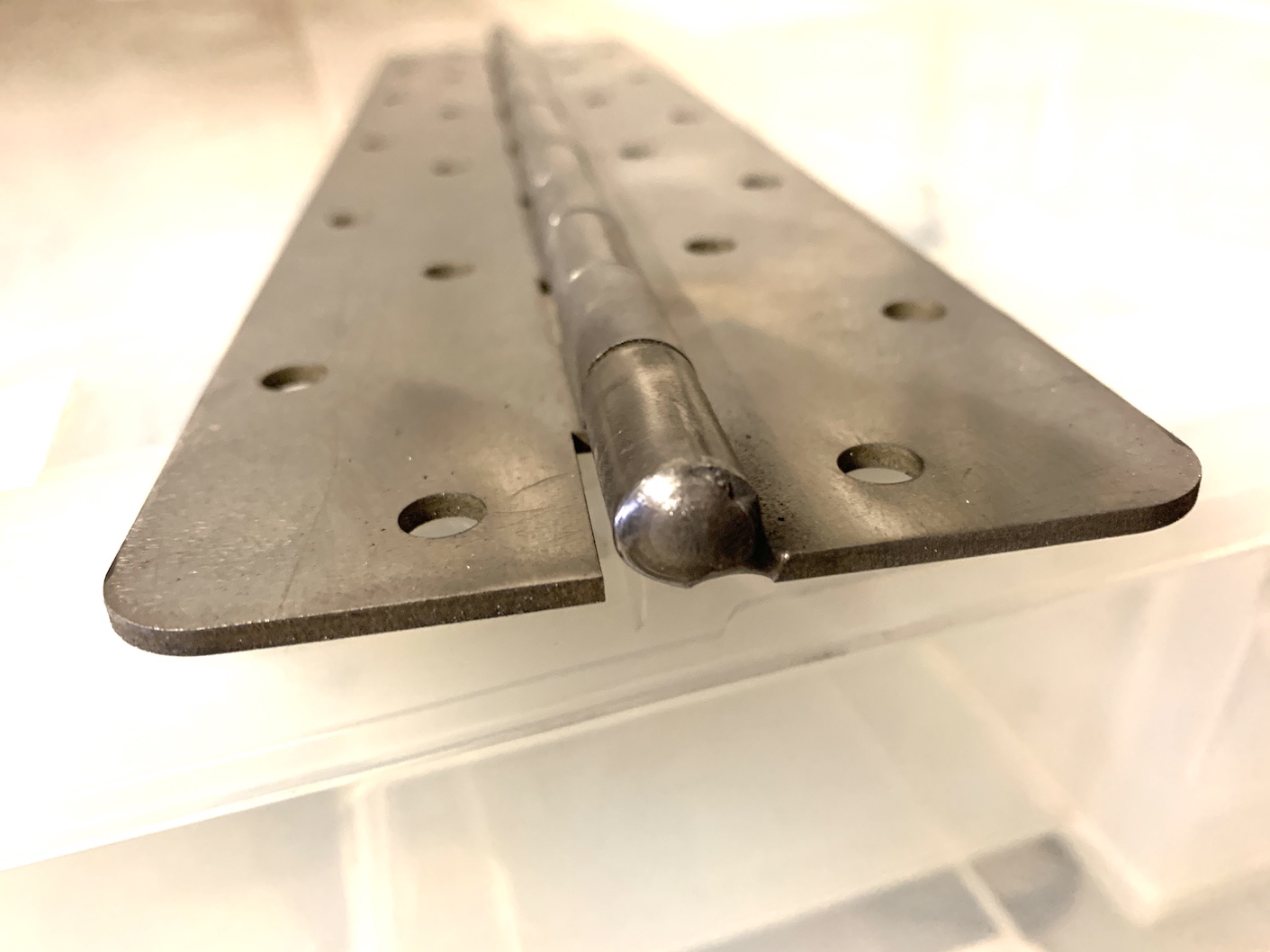 Петля рояльная, усиленная, для крепления транцевых плит к корпусу катера. Если устанавливать боковые пластины, можно разрезать настоящую петлю на две части