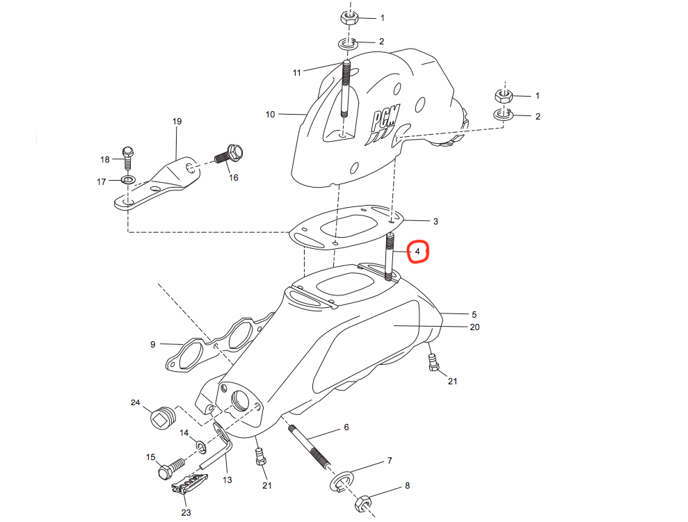 —Шпилька колена выхлопного коллектора, 6.0L, PCM R031039